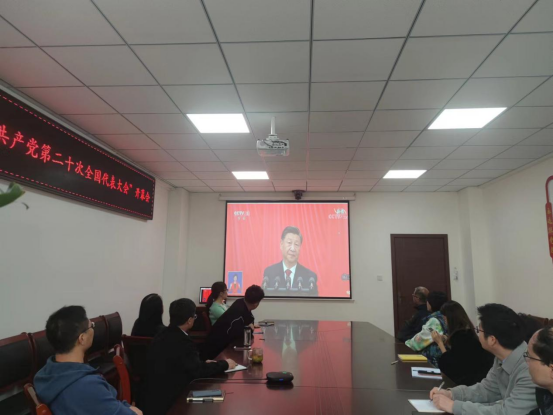 金秋十月,神州大地天清气朗,山河锦绣。10月16日上午,迎着收获的喜悦,中国共产党第二十次全国代表大会在北京开幕。球王会体育全体教职工在 A04-104会议室、球王会体育青马班全体学员在 A04-106教室分别集中收看了此次开幕会。