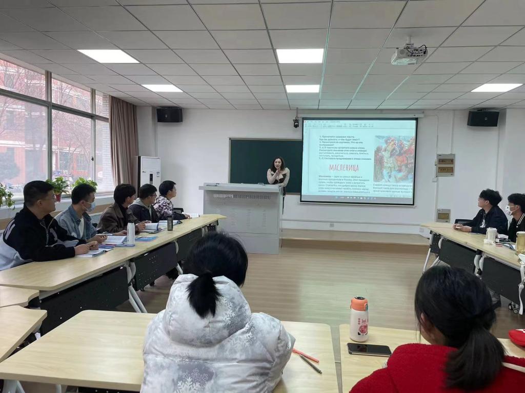 2023年2月28日下午,球王会体育本学期首次“俄语角”活动在A04-106外语实训中心开展,外教Юлия(Iuliia)和公司20名员工参加了此次活动。