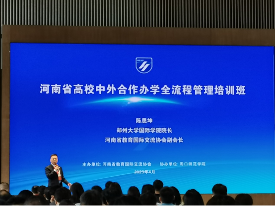 根据省教育厅工作安排,由河南省教育国际交流协会主办,周口师范公司承办的河南省高校中外合作办学全流程培训班于4月26日至27日在郑州开班,球王会体育副经理赵鹏参加本次培训。